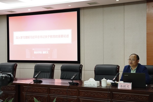 此次专题学习会邀请新余学院马克思主义学院潘欧文博士作学习《习近平总书记关于教育的重要论述》专题辅导报告。潘欧文博士站在全国教育高质量发展的高度,着眼民族复兴伟大梦想,以宽广的视野、深厚的研究功底,围绕习近平总书记关于教育的重要论述战略视野、内容体系、重大意义三个方面,对习近平总书记关于教育重要论述进行详细阐述,报告政治站位高、领会把握准、研究阐释透,引起全场强烈共鸣,具有很强的理论性、针对性和指导性,使大家深受启发、受益匪浅。