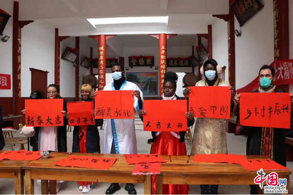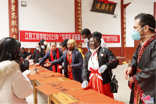 为学习宣传贯彻党的二十大精神,弘扬优秀的中国春节文化,1月16日,江西工程学院宣讲文化艺术“三下乡”暨“写春联送祝福留学生体验传统中国年”文化下乡活动在新余市渝水区水北镇伍塘村举行,让身在异乡的留学生们感受浓浓的年味,用丰富的艺术形式营造起留学生与村民之间欢庆祥和、其乐融融的过年氛围。
