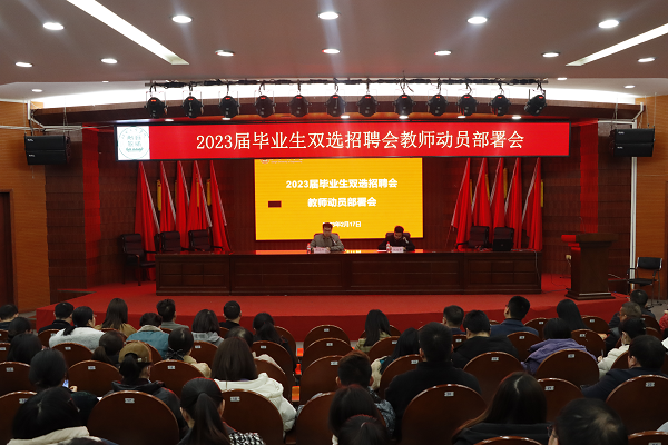 通过此次动员大会,体现了学校、领导对双选招聘会的高度重视,为后期工作的顺利开展奠定了坚实基础。
