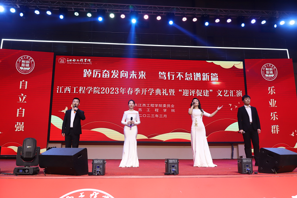 大会最后,一场大型文艺汇演为全体师生带来一场视觉盛宴。“不忘初心跟党走”篇——金阳光舞团带来的群舞《奋进江工》跳出了活力、跳出了青春,充分展现江工学子打赢学校本科教学工作合格评估攻坚战的必胜决心。抱石艺术学院演唱的《向往》唱出了对祖国的崇敬与爱恋,唱出了对于未来的向往。抱石艺术学院通过大型情景诗朗诵《少年中国说》把对祖国的热爱、对理想的追求,融入到字里行间,切实展现身为中国人的自豪感和使命感。抱石艺术学院用男女对唱的方式献上《不忘初心》,不忘初心,方得始终;无畏艰险,砥砺前行;坚持梦想,坚守岗位。