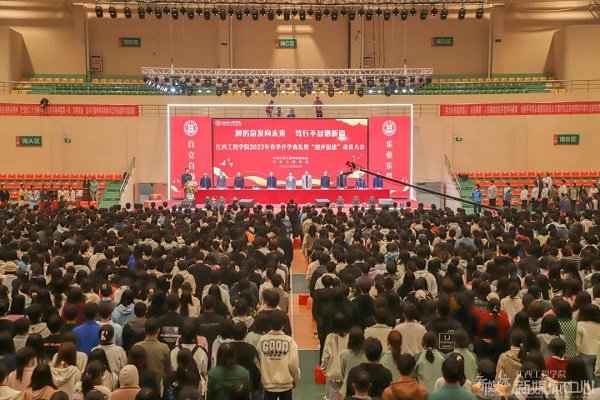 (本网讯 校报记者团 肖雄滔 李春宇 报道)奋斗铸就辉煌,实干赢得未来。正当“全国两会”胜利召开之际、三八妇女节之时、决战决胜本科教学工作合格评估关键时期,我校在天工校区体育馆隆重举行2023年春季开学典礼暨“迎评促建”动员大会。学校董事长杨显阳,党委书记、督导专员胡涌,党委副书记、校长陈学军,党委委员、副校长沈良,党委副书记、副校长冯赟,党委委员、副校长黄海军,党委副书记、纪委书记黄志良,党委委员、副校长刘德华,党委委员、董事长助理、校长助理乐俊杰,党委委员、校长助理陶小兵,党委委员、校长助理邹建民出席大会并于主席台就座。江工全体师生参加大会。大会由党委副书记、副校长冯赟主持。