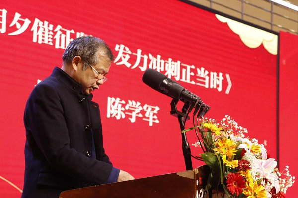 陈学军在大会上作了《只争朝夕催征紧发力冲刺正当时》主题报告。他从本科教学工作合格评估的作用;学校启动迎评促建工作以来取得的成果;目前以评促建工作还存在的短板和问题;学生如何做好迎接本科教学工作合格评估四个方面向同学们介绍我校本科教学工作合格评估情况,并指出本科教学工作合格评估事关我校的建设发展,事关我校的声誉影响。全校同学要自觉肩负起学校发展的历史重任,以饱满的热情和负责的态度,积极投入到迎接本科教学工作合格评估的各项工作中来。