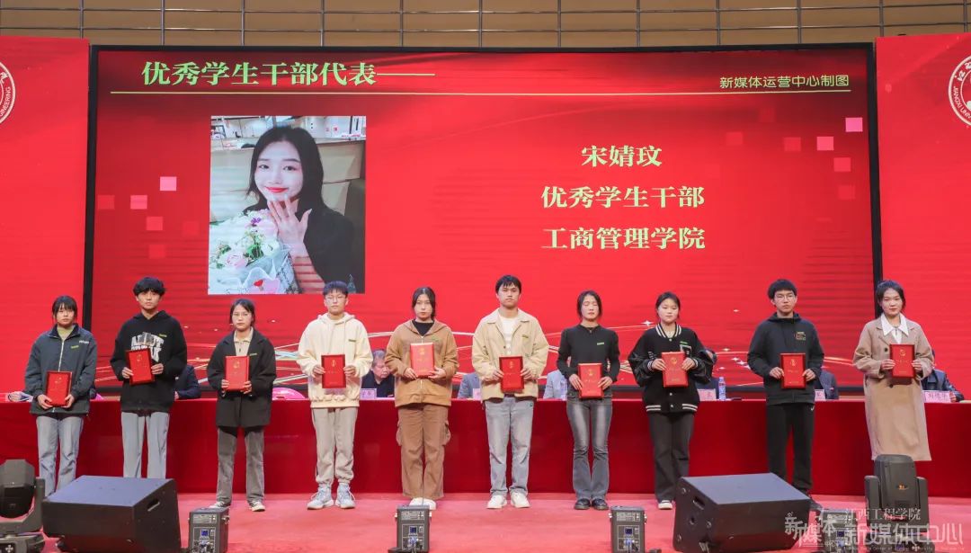 冯赟宣读《关于表彰先进集体和优秀学生的决定》、《关于表彰国家奖学金、励志奖学金、天工奖学金的决定》。
