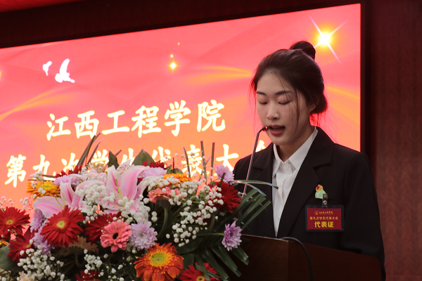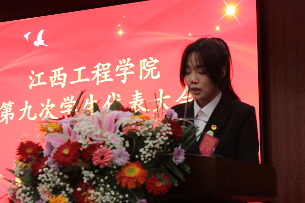 第九届学生委员会代表王美艳宣读《江西工程学院第九次学生代表大会提案征集情况报告》