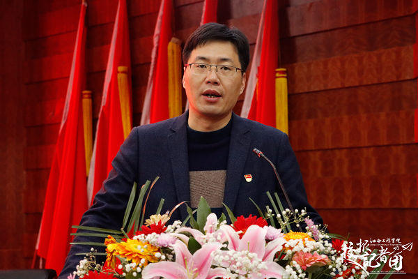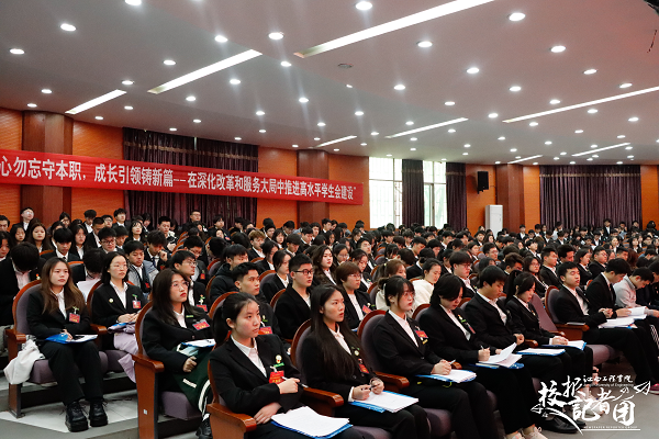 校党委副书记、副校长冯赟代表学校党委作了热情洋溢的讲话,充分肯定了我校青年学子在学校发展建设中作出的积极贡献,表达了学校党委对青年一代的亲切关怀和殷切希望,并对今后一个时期学生会组织工作提出了新的任务和要求,同时向与会代表和全体青年学生提出三点希望:一是要坚定信念、担当使命,做民族复兴的奋斗者,希望广大代表传承好红色基因,始终保持朝气锐气,始终充满奋斗精神,努力成为广大学生的榜样。二是要锤炼本领、提高素养,做勇攀高峰的求索者,希望广大代表传承“江工有爱、爱在江工”优良传统,成为有大爱大德大情怀的人。强化服务意识,创新工作思维,坚持从同学中来、到同学中去。三是要认真履职、自我革命,做躬身笃行的服务者,希望广大代表养成勤于奉献的品性,并将这种情操、本领和品性从学生工作带到平时的日常生活,从学生时代带到未来的工作岗位,让青春在奉献中得到绽放。