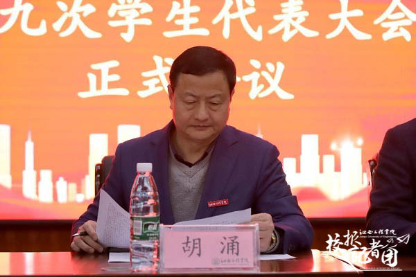 在全校上下深入学习贯彻党的二十大精神、落实江西省高质量发展大会精神、加快推进学校高质量发展之际,为进一步做好学校青年工作,3月5日,我校第九次学生代表大会在天工校区学术报告厅一楼举行。校党委书记、督导专员胡涌,校党委副书记、副校长冯赟出席会议并在主席台就座,校团委学生会指导教师魏晓燕主持会议。