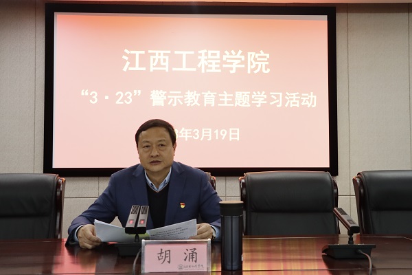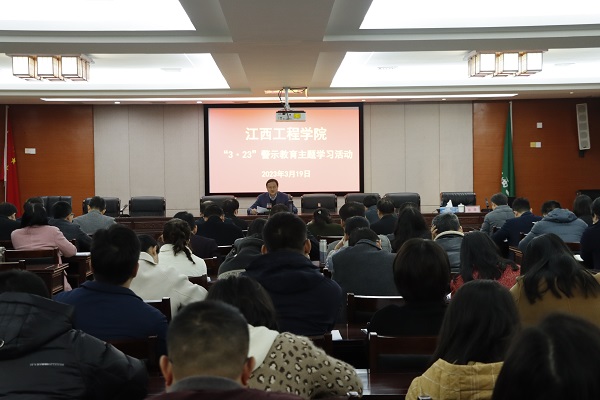 会上,与会人员观看了电视专题片《“赶考”路上》警示教育专题片,党委书记、督导专员胡涌以《以担当实干走好新的赶考之路》为题为大家上了一堂专题党课。党委专职副书记、纪委书记黄志良通报了《关于肖志华腐败案件暴露教育领域突出问题及其教训警示的通报》,宣读了《江西工程学院关于开展“3.23”警示教育活动的通知》。