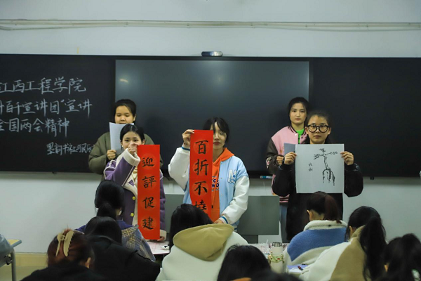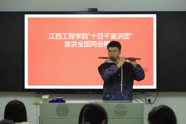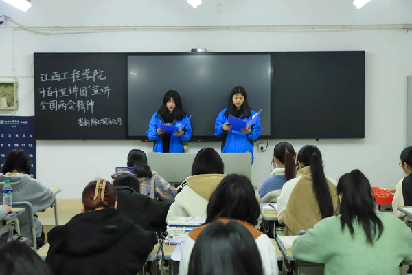 (本网讯 肖雄滔 报道)全国“两会”是在全面贯彻党的二十大精神开局之年,在全面建设社会主义现代化国家开局起步关键时期召开的一次重要会议,深入学习宣传贯彻全国“两会”精神是学校当前和今后一个时期的重要政治任务。为帮助学校师生进一步领会中国式现代化的深刻内涵,3月19日,江西工程学院“十百千宣讲团”走进班级宣讲全国“两会”精神,并对本科教学工作合格评估手册进行全方位的解读。
