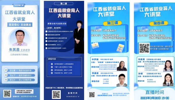 “就业育人”主题教育活动结合教育部“互联网+就业指导”公益直播课和江西省就业育人大讲堂线上线下同步开展。