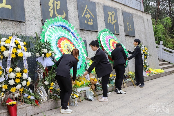 “巍巍青山埋忠骨,朵朵白花奠英灵。”又是一个清明节,又是一个缅怀先烈的日子。4月2日上午,我校校团委组织第九期青马工程培训班学员与天工朗诵团成员,怀着十分沉痛的心情,前往仰天岗革命烈士纪念碑开展“缅怀革命先烈 赓续红色基因”清明祭英烈活动。