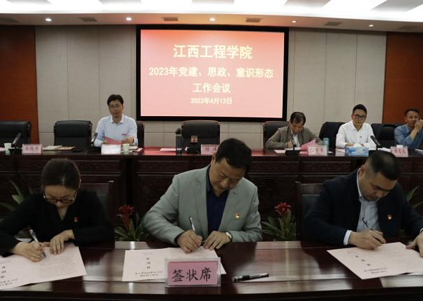 会上,党委副书记、副校长冯赟作“2022年思政和意识形态工作总结”并部署2023年思政与意识形态重点工作;党委专职副书记、纪委书记黄志良部署2023年党建工作;党委委员、党委宣传部部长于永清,党委学工部部长陈居权,数字贸易学院党总支书记张文凤就如何做好党建、思政、意识形态工作作典型发言;意识形态工作领导小组组长胡涌与各基层党组织主要负责人签订《江西工程学院2023年意识形态工作责任书》。