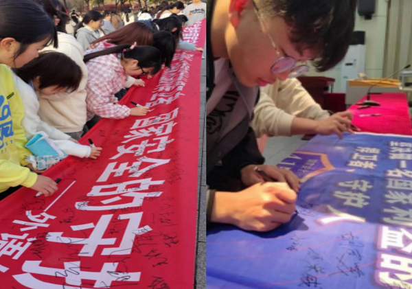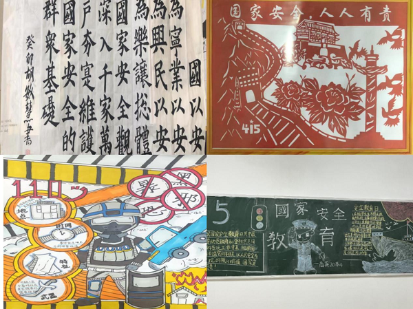 在4月1日—15日期间,各教学院多形式开展了以“国家安全教育”为主题的系列宣教活动,包括主题班会、抄报绘做、海报设计、书法作品、剪纸展览、国家安全知识竞赛、黑板报制作、演讲比赛、观看国家安全教育直播、在印有“坚定维护国家安全信念,坚决做一名国家利益的捍卫者、守护人”的横幅上签名等创意活动,深入学习贯彻习近平总书记总体国家安全观,使同学们在创作和参与过程中树立了国家安全意识,掌握了国家安全知识。