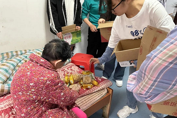 随后,志愿者们在院内帮忙打扫,为老人们打造干净整洁的生活环境,同时,志愿者们还带了牛奶、面包、纸巾等物品来慰问,给老人送去爱心与温暖。