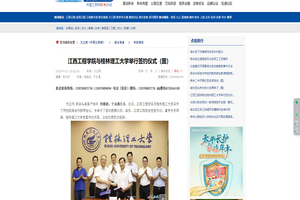 近日,江西工程学院与桂林理工大学召开了两校战略合作联席会议,并举行了签约授牌仪式。首先,江西工程学院党委书记、督导专员胡涌,桂林理工大学党委书记邓军,分别代表校方致辞。