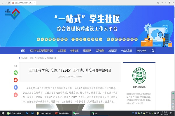 今年是深入学习贯彻党的二十大精神的开局之年,为扎实开展学习贯彻习近平新时代中国特色社会主义思想主题教育,江西工程学院高位谋划、迅速启动,精心安排、统筹协调,牢牢把握“学思想、强党性、重实践、建新功”的总要求,实施“12345”工作法,在思想碰撞中深化认识、坚定信念,在深学细悟中激发动力、增强本领,在有机融合、一体推进中扎实开展主题教育,注重实效。