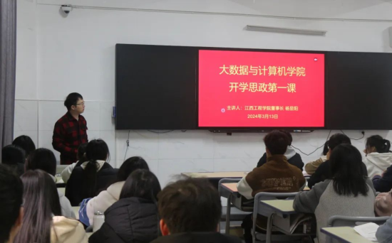 “同学们,你们建功立业的舞台空前广阔,梦想成真的前景空前光明,每个人都有机会在实现中国梦的伟大实践中创造自己的精彩人生。”近日,在“思政第一课”上,江西工程学院董事长杨显阳开场就给青年学生送上了热情的鼓舞。围绕“坚定文化自信,笃信使命担当”这一主题,杨显阳董事长旁征博引,深入浅出,为学生讲授了一堂精彩的思政课,勉励同学们做有理想、敢担当、能吃苦、肯奋斗的新时代好青年,不辜负党对青年一代的亲切关怀和殷切期待。该校大数据与计算机学院2023级数据科学与大数据技术本科1班全体学生现场聆听授课。