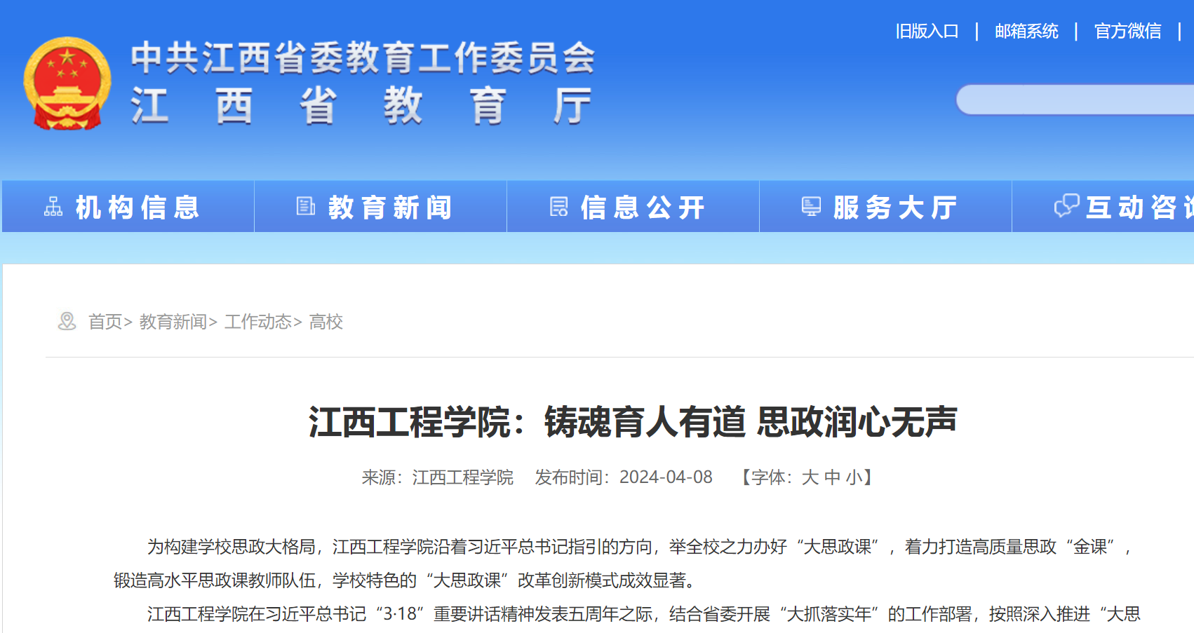 为构建学校思政大格局,江西工程学院沿着习近平总书记指引的方向,举全校之力办好“大思政课”,着力打造高质量思政“金课”,锻造高水平思政课教师队伍,学校特色的“大思政课”改革创新模式成效显著。