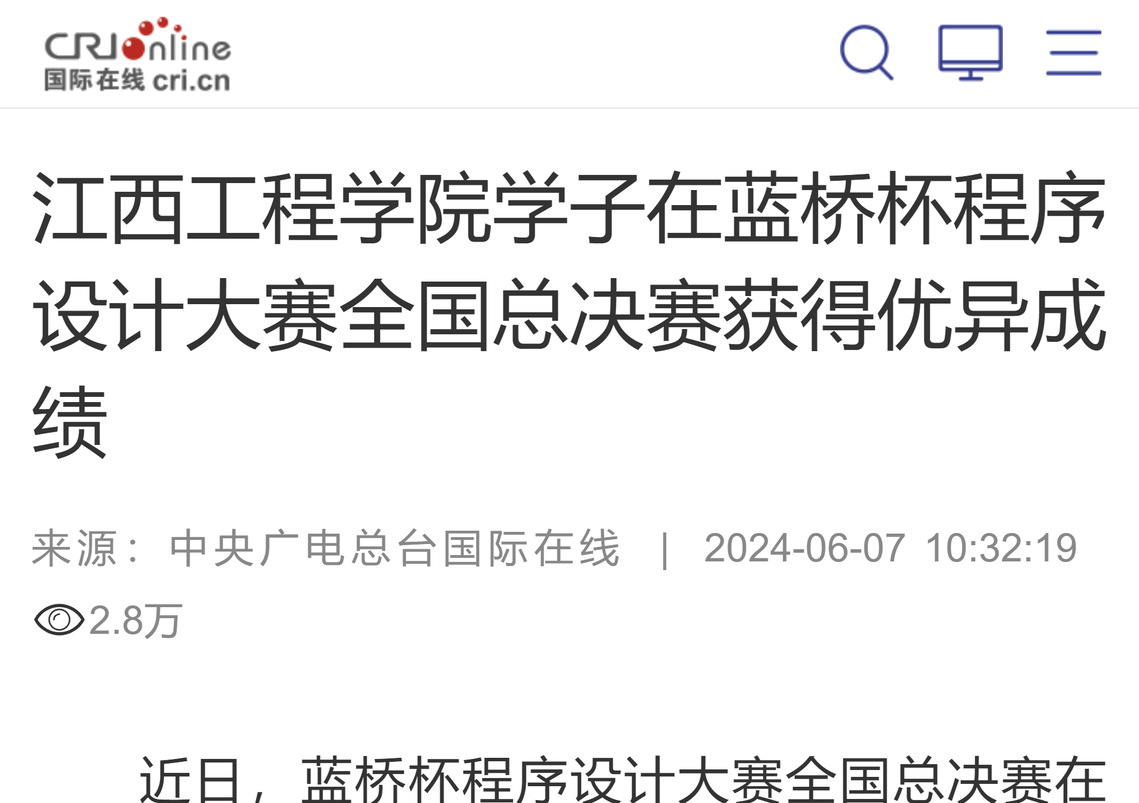 江西工程学院智慧产业学院一直注重培养学生的实践能力和创新精神,鼓励学生参加各类学科竞赛和实践活动。学子们在本次蓝桥杯程序设计大赛取得优异成绩,不仅展示了学院的教学成果和学生的综合素质,也为学生们提供了展示自己才华的平台和机会。