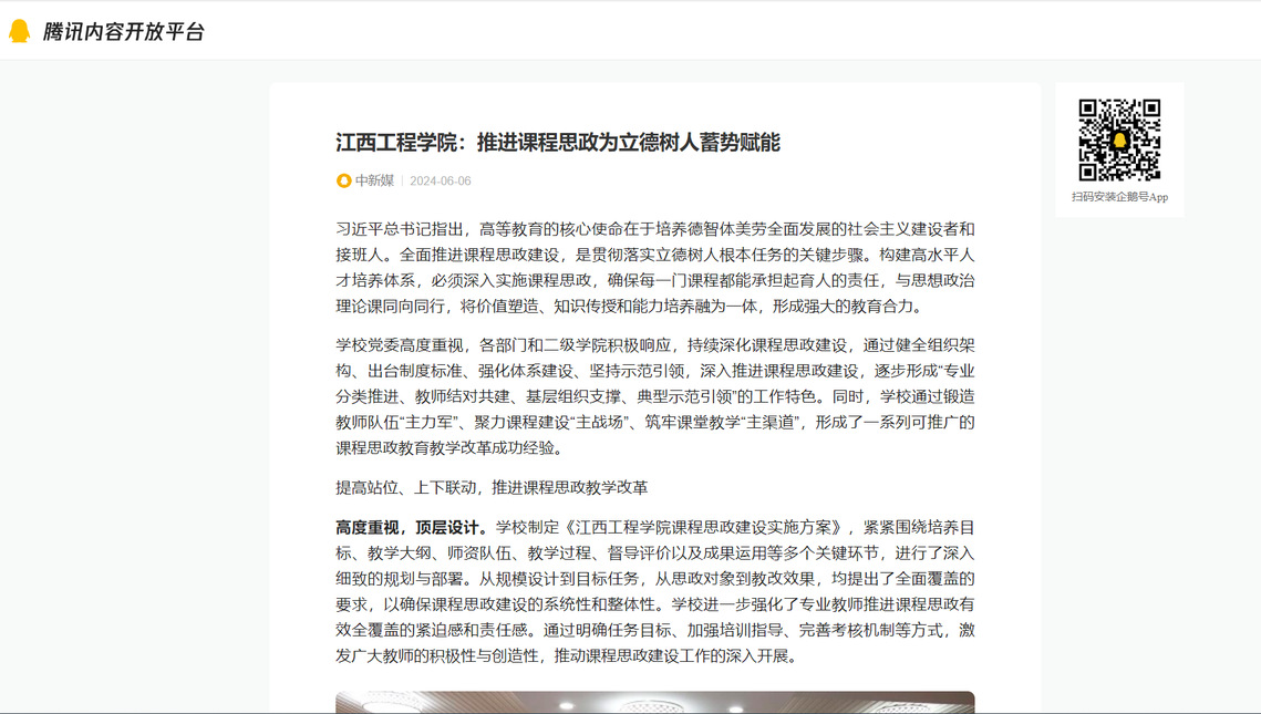 高度重视,顶层设计。学校制定了《江西工程学院课程思政建设实施方案》,该方案紧密围绕培养目标、教学大纲、师资队伍、教学过程、督导评价以及成果运用等多个关键环节,进行了深入细致的规划和部署。从规模设计到目标任务,从思政对象到教改效果,均提出了全面覆盖的要求,以确保课程思政建设的系统性和整体性。学校进一步强化了专业教师推进课程思政有效全覆盖的紧迫感和责任感。通过明确任务目标、加强培训指导、完善考核机制等方式,激发广大教师的积极性与创造性,推动课程思政建设工作的深入开展。