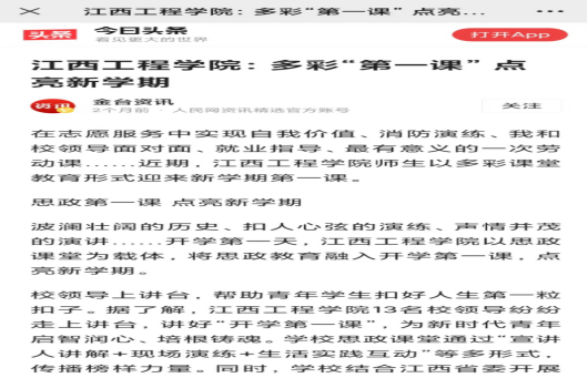 江西工程学院通过多种形式开展的“开学第一课”,在师生中引起热烈反响,取得了良好的成效。