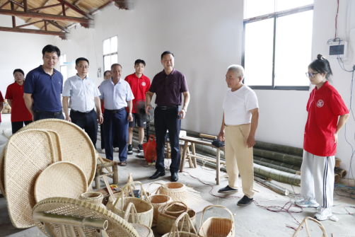 胡涌和实践队员来到分宜洞村李年根竹编艺术展览馆,与新余市级非遗竹编第五代传人的李年根进行交流,详细了解竹编手艺的传承创新发展情况,希望全校师生能够学习和弘扬工匠精神,发挥互联网作用,在各自的岗位上创造出不平凡的业绩。