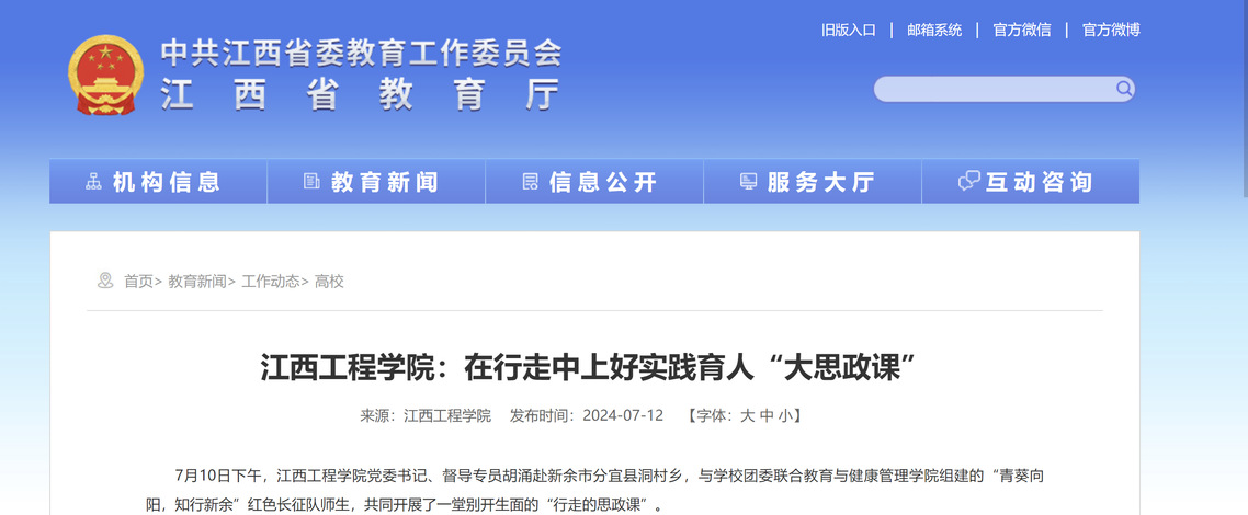 7月10日下午,江西工程学院党委书记、督导专员胡涌赴新余市分宜县洞村乡,与学校团委联合教育与健康管理学院组建的“青葵向阳,知行新余”红色长征队师生,共同开展了一堂别开生面的“行走的思政课”。