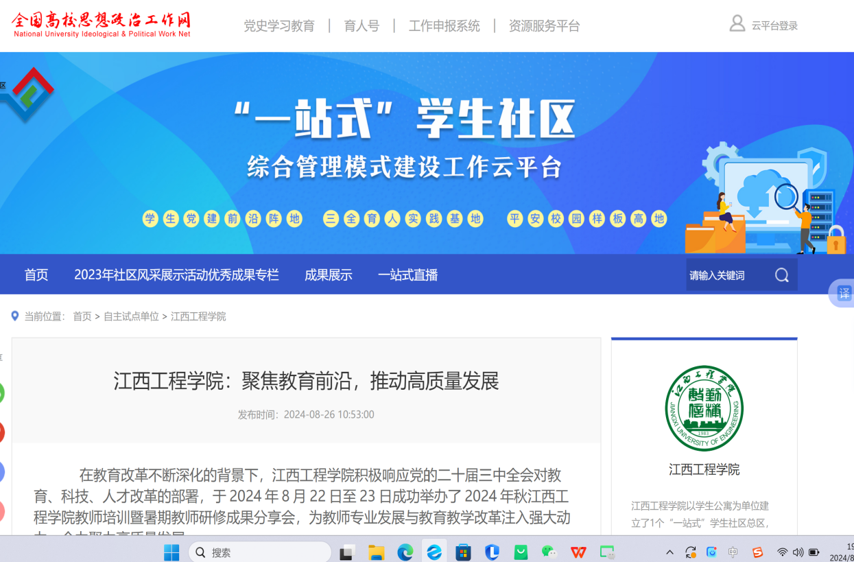 在教育改革不断深化的背景下,江西工程学院积极响应届三中全会对教育、科技、人才改革的部署,于2024年8月22日至23日成功举办了2024年秋江西工程学院教师培训暨暑期教师研修成果分享会,为教师专业发展与教育教学改革注入强大动力,全力聚力高质量发展。