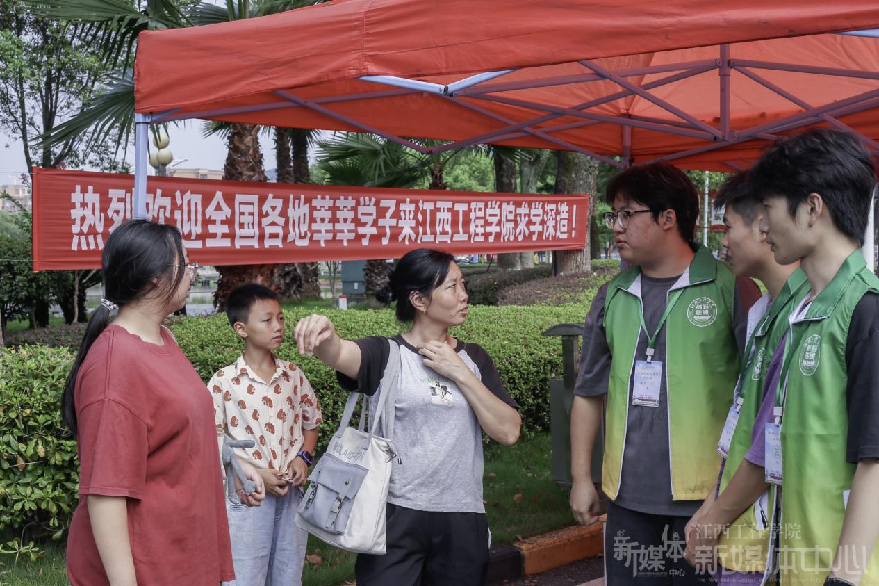 江西工程学院南大门,红色拱门高高立起,“热烈欢迎全国各地莘莘学子来江西工程学院求学深造”的巨大红色拱门前,很多新生和家长在驻足拍照。这一刻,热情的志愿者化身摄影师,将一个又一个温暖的故事和美好瞬间记录下来。