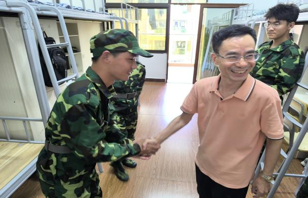 在走访过程中,史洪松和范向红一边走一边为刘德华介绍宿舍的基本情况以及人员入住情况。当刘德华进入新生宿舍后,宿舍内的新生们纷纷起身并向刘副校长问好,刘德华与同学们热情的握手并关心他们的入学适应情况,包括宿舍环境是否满意、生活上有无困难等,鼓励新生们要尽快适应新环境,开启大学生活的新篇章。