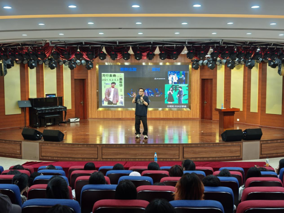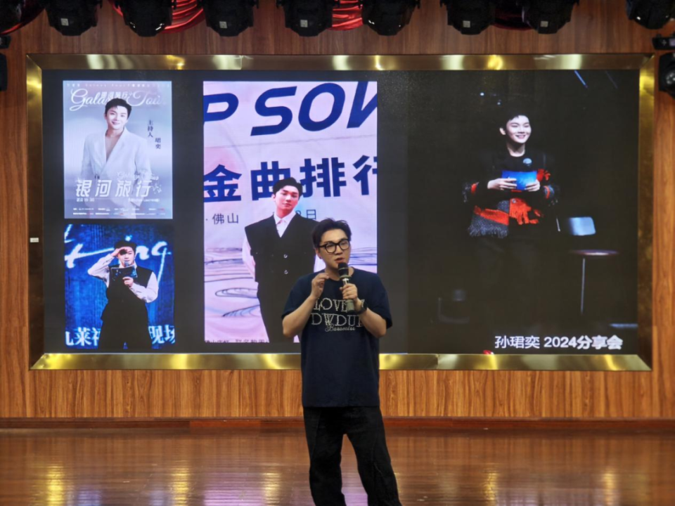 在谈到毕业后的发展时,孙珺奕分享了自己在主持创作过程中遇到的挑战和困难,以及如何克服这些困难,不断突破自我。他展示了自己的一些代表作品以及主持现场,详细讲解了背后的故事,让同学们深刻感受到了他星路历程的魅力和艰辛。他鼓励学弟学妹们要保持对艺术的热爱和执着,不断尝试新的创作和解题思路,勇于表达自己的想法和观点。