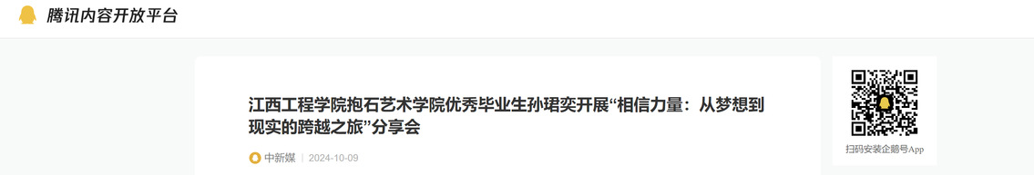 2024年9月28日晚上7:00,江西工程学院抱石艺术学院在天工校区文科楼四楼演艺厅举行优秀毕业生孙珺奕“相信力量:从梦想到现实的跨越之旅”分享会。