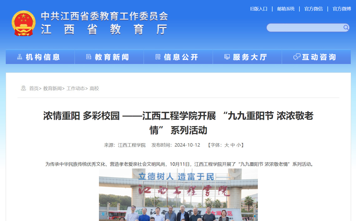 为传承中华民族传统优秀文化,营造孝老爱亲社会文明风尚,10月11日,江西工程学院开展了“九九重阳节 浓浓敬老情”系列活动。