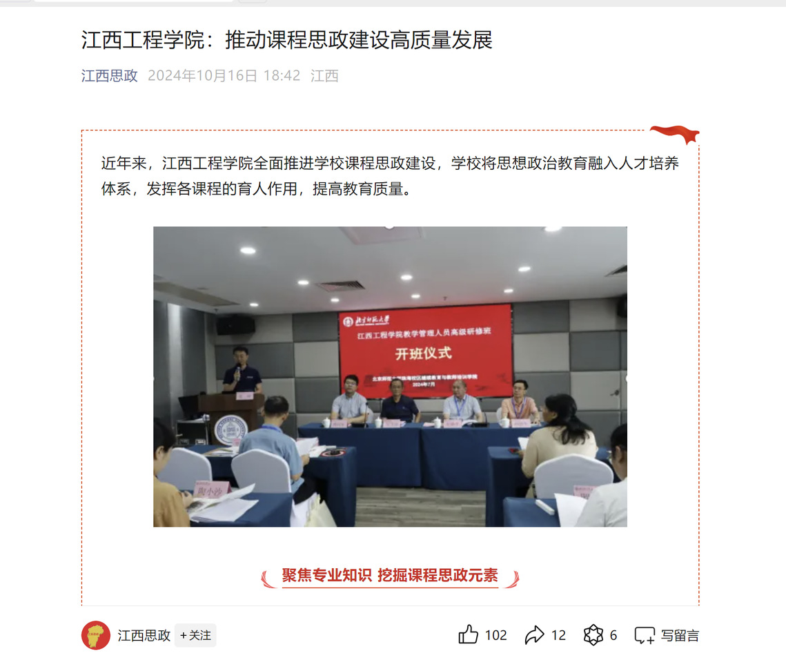 近年来,江西工程学院全面推进学校课程思政建设,学校将思想政治教育融入人才培养体系,发挥各课程的育人作用,提高教育质量。