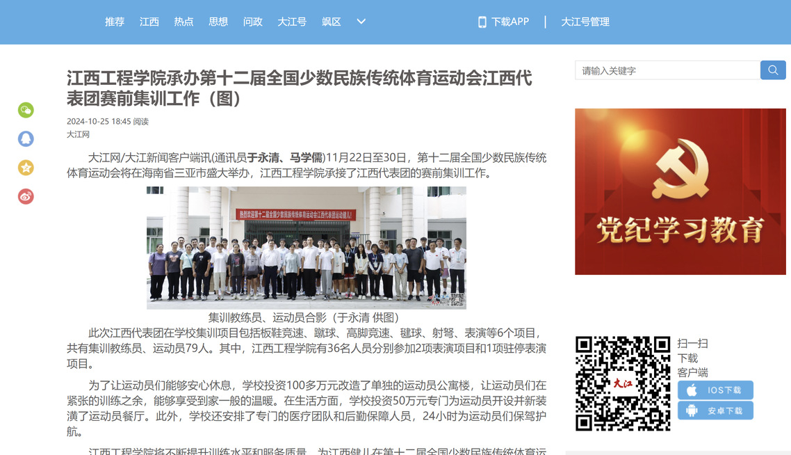 11月22日至30日,第十二届全国少数民族传统体育运动会将在海南省三亚市盛大举办,江西工程学院承接了江西代表团的赛前集训工作。