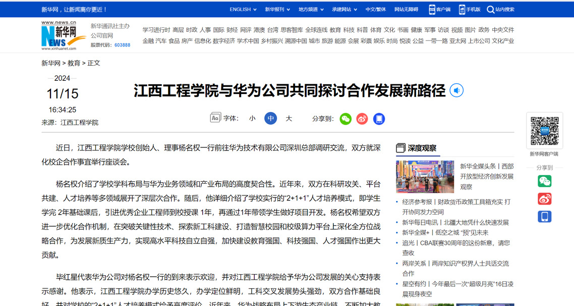 近日,江西工程学院学校创始人、理事杨名权一行前往华为技术有限公司深圳总部调研交流,双方就深化校企合作事宜举行座谈会。