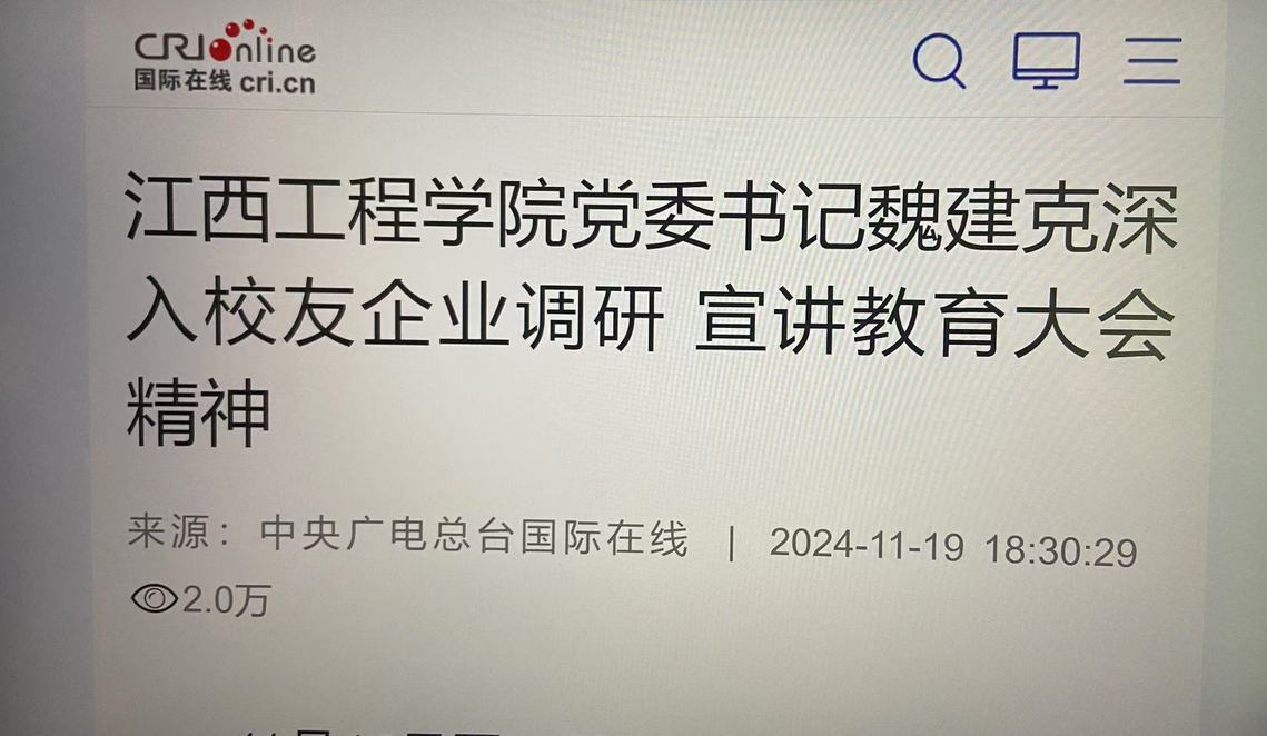 11月15日至16日,江西工程学院党委书记、督导专员魏建克深入校友企业展开调研,并积极宣讲全国教育大会精神和全省教育大会精神,为学校就业、校企合作以及产教融合工作的进一步深化筑牢了坚实根基。