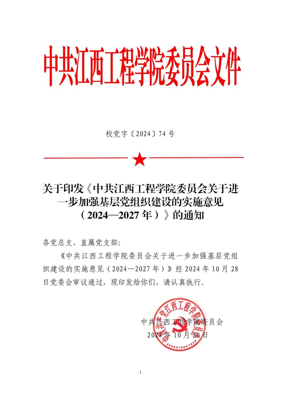 新时代高校党建示范创建和质量创优工作,是在习近平新时代中国特色社会主义思想指导下高校加强党建工作的生动实践,是全面贯彻党的教育方针、落实立德树人根本任务的重要举措。近期,江西工程学院党委多措并举,上下联动,全力推进党建“双创”工作,进一步加强学校党建与业务工作深度融合,不断提升基层党组织的战斗力和凝聚力,为学校高质量发展提供坚强组织保障。