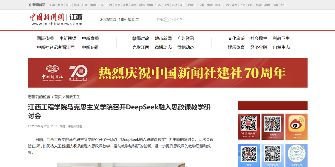 日前,江西工程学院马克思主义学院召开了一场以“DeepSeek融入思政课教学”为主题的研讨会。此次会议旨在探讨如何将人工智能技术深度融入思政课教学,推动教学与科研的创新,进一步提升思政课的教学质量和效果。