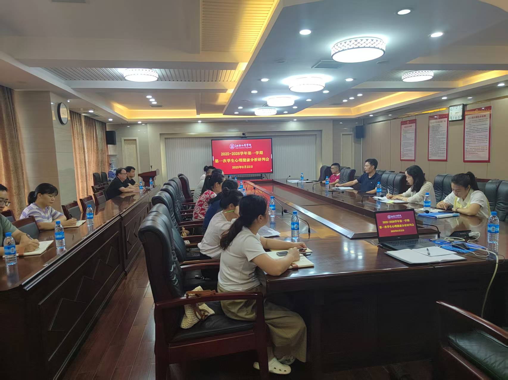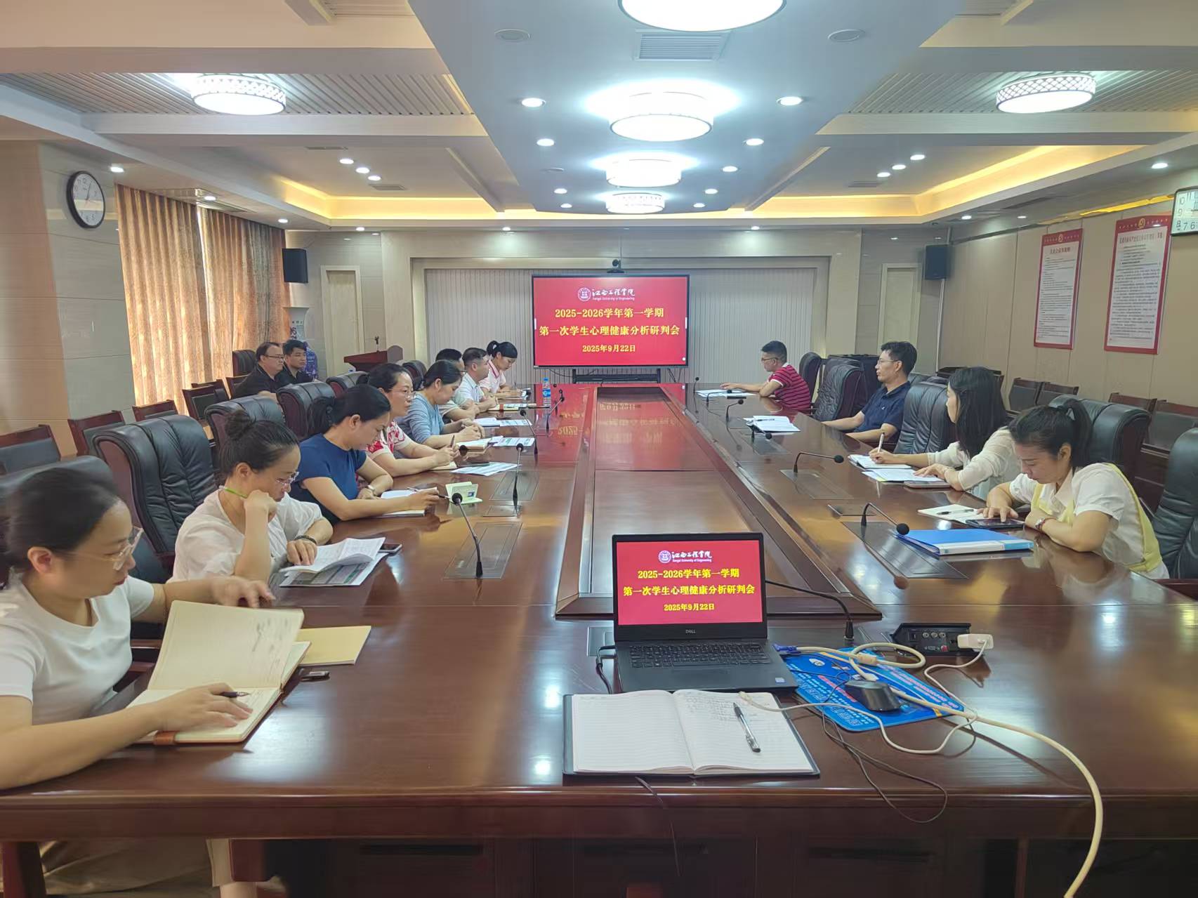 为了解新学期学生心理健康状况,切实做好学生心理健康教育工作,提升心理育人实效,维护校园和谐稳定。9月22日下午,学校在天工校区行政楼七楼会议室召开2025-2026学年第一学期第一次学生心理健康分析研判会。校党委副书记、副校长冯赟出席会议并讲话,学生工作处全体人员、各二级学院心理辅导站站长以及副书记参加了本次会议。