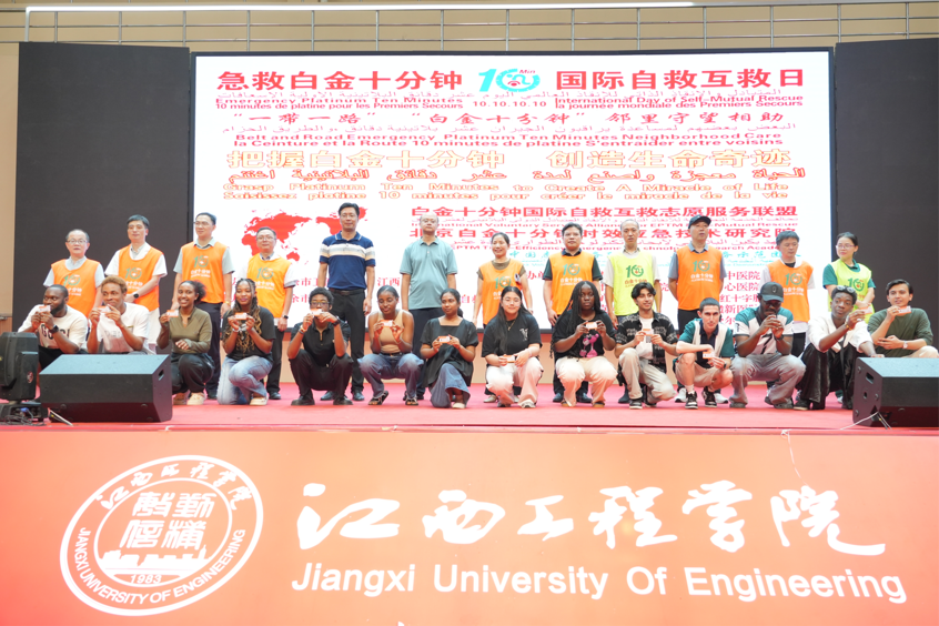 2025年10月9日下午,由新余市卫生健康委员会与学校联合主办、新余市人民医院及白金十分钟全国自救互救志愿服务联盟新余团队共同承办的健康新余行动暨第十六届“急救白金十分钟——全国(国际)自救互救日”志愿服务联盟活动在学校天工校区体育馆隆重举行。本次活动严格遵循活动方案,以“排查身边灾害隐患,做好自救互救”为主题,旨在向大众宣传“白金十分钟”急救规律,普及急救知识与技能。来自我校34个国家的近200名国际留学生与本地志愿者、医护人员一同参与了这场生命教育实践课。