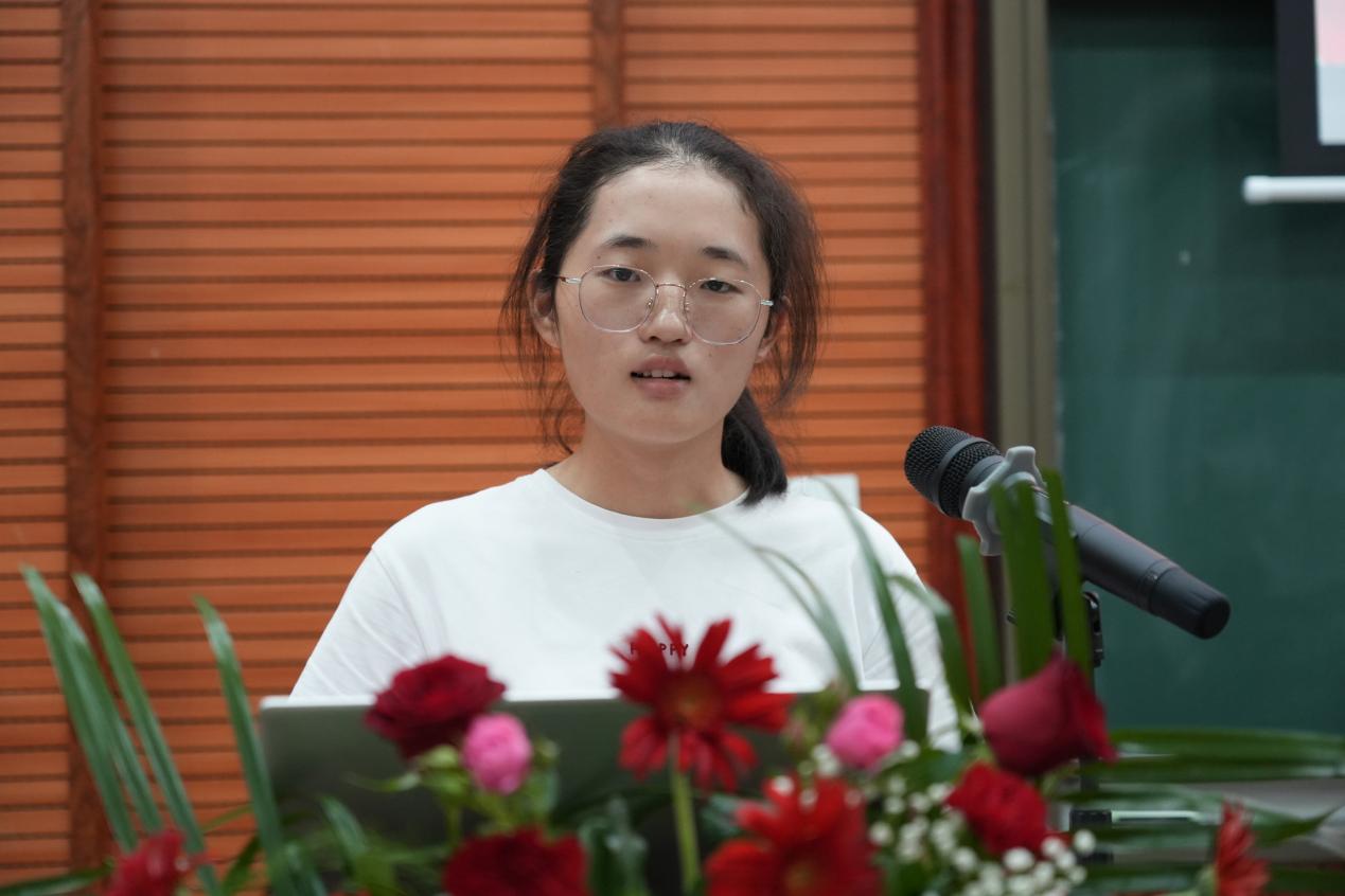 获助学生代表胡紫萌在发言中简要介绍了自己的生活学习情况,并表示,“躬身实践”是治愈懒散、焦虑的良药,自立自强才是出路,永怀感恩之心,努力做一个对国家、对社会、对家庭有用的人。