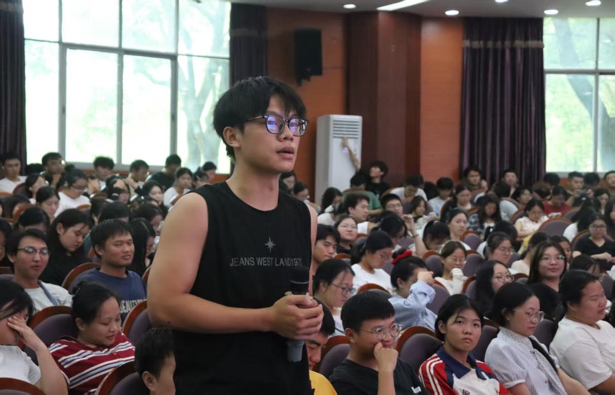 宣讲团成员、江西工程学院马克思主义学院直属党支部副书记黄琴用丰富的案例诠释中国式现代化的基本特征,以“书写属于我们这代人的奋斗答卷”聚焦青年成长成才与时代使命,结合当下社会发展趋势与大学生成长特点,为新生们解读如何将个人奋斗融入国家发展大局。她指出,新时代为青年提供了广阔的舞台,无论是学术科研、创新创业、还是志愿服务、社会实践、都是青年践行奋斗精神的重要途径。“作为新时代大学生,你们不仅要练就过硬本领,更要树立远大理想,把个人的理想追求融入党和国家事业之中,让青春在全面建设社会主义现代化国家的火热实践中绽放绚丽之花。”黄琴还与学生互动交流,耐心解答大家关于大学规划、奋斗方向的疑问,现场掌声不断。