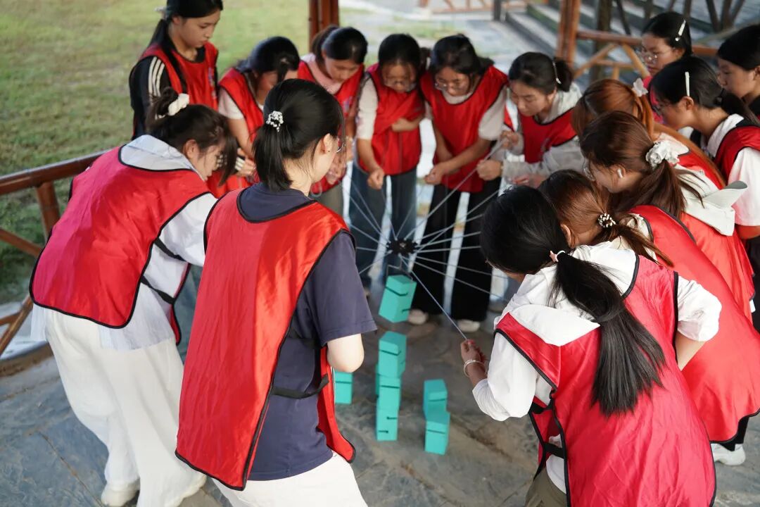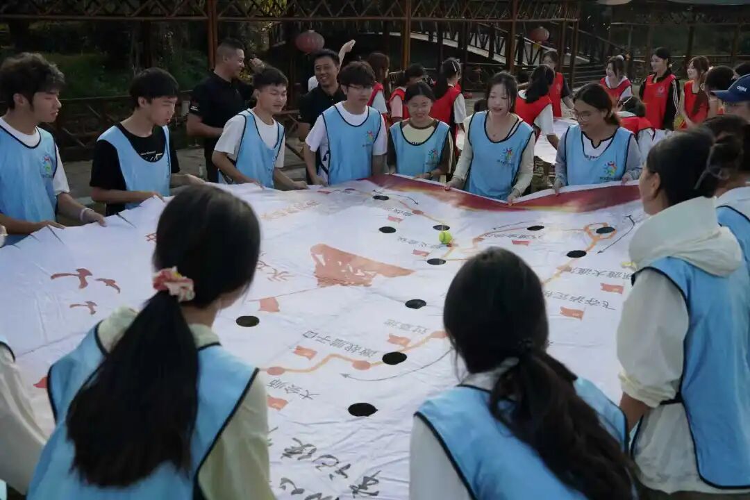 接着,来到红色拓展环节,“合力筑塔”模拟“支部建在连上”,全队拉绳协作搭建9层“堡垒”,让同学们体悟组织强基的力量;“重走长征路”在巨型地图运球闯关于党史答题中,将智慧与协作转化为前进动力;“齐头并进”的踏板鞋接力,则以“步调一致”的实践诠释团结制胜的真理。