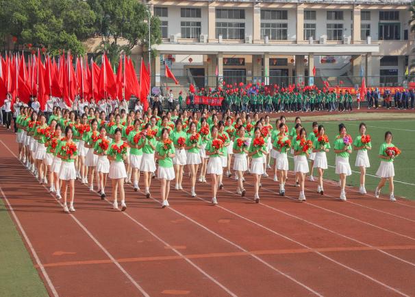 伴随着雄浑激昂的《运动员进行曲》,国旗护卫队方阵高擎国旗率先入场,红旗方队、花束方队依次入场,精神饱满、步伐铿锵。来自各二级学院的学生方阵紧随其后,以别出心裁的服饰道具和创意表演展现了鲜明的特色风采,为运动会拉开了精彩序幕。