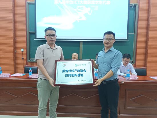 深化产教融合,开启赛事新篇。在热烈掌声中,华为优选级认证培训中心江西幻云科技有限公司,向江西工程学院人工智能与数据科学学院授予“数智领域产教融合协同创新基地”牌匾。这一举措标志着学校与华为及生态伙伴公司在产教融合领域达成新合作,将为培养更多符合产业需求的数智人才提供有力支撑。