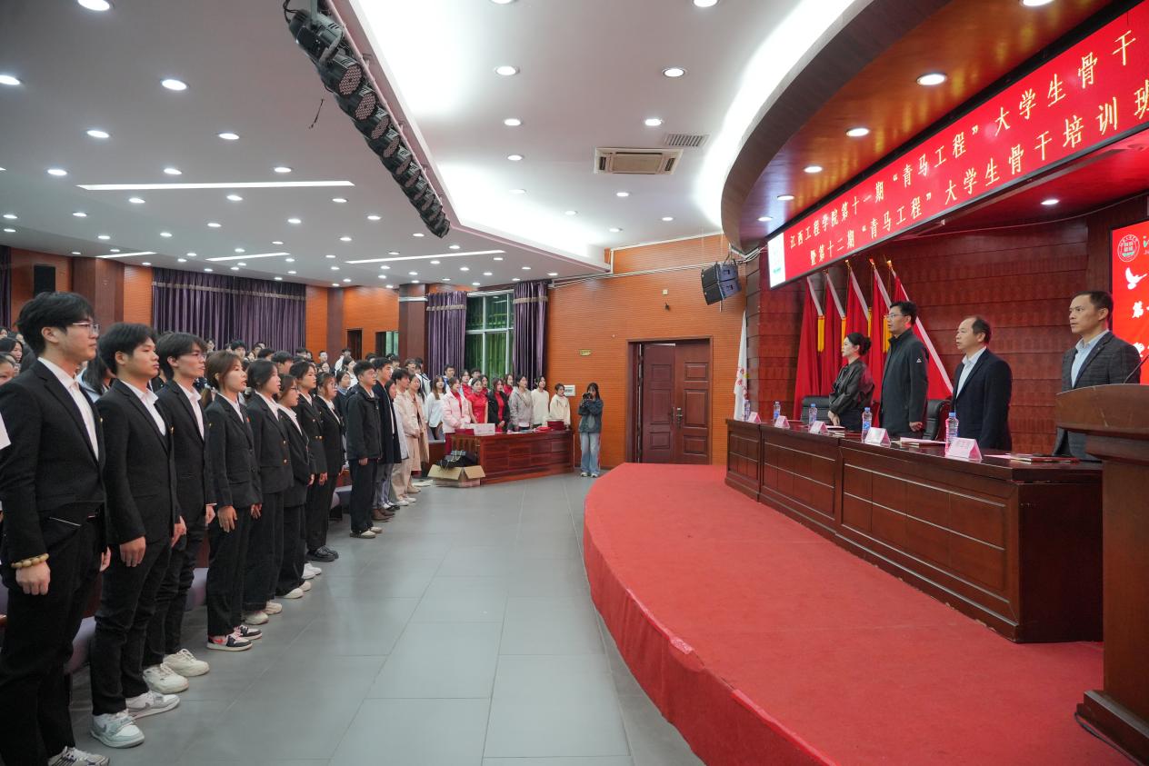 校党委副书记、副校长冯赟,党委委员、宣传部部长于永清,团委书记桂盈盈,党委学工部副部长周卫忠,学生社区直属党支部副书记朱鹏飞出席仪式,第十一期青马班优秀学员、第十二期青马班全体学员齐聚一堂,共赴这场青春与信仰的盛会。