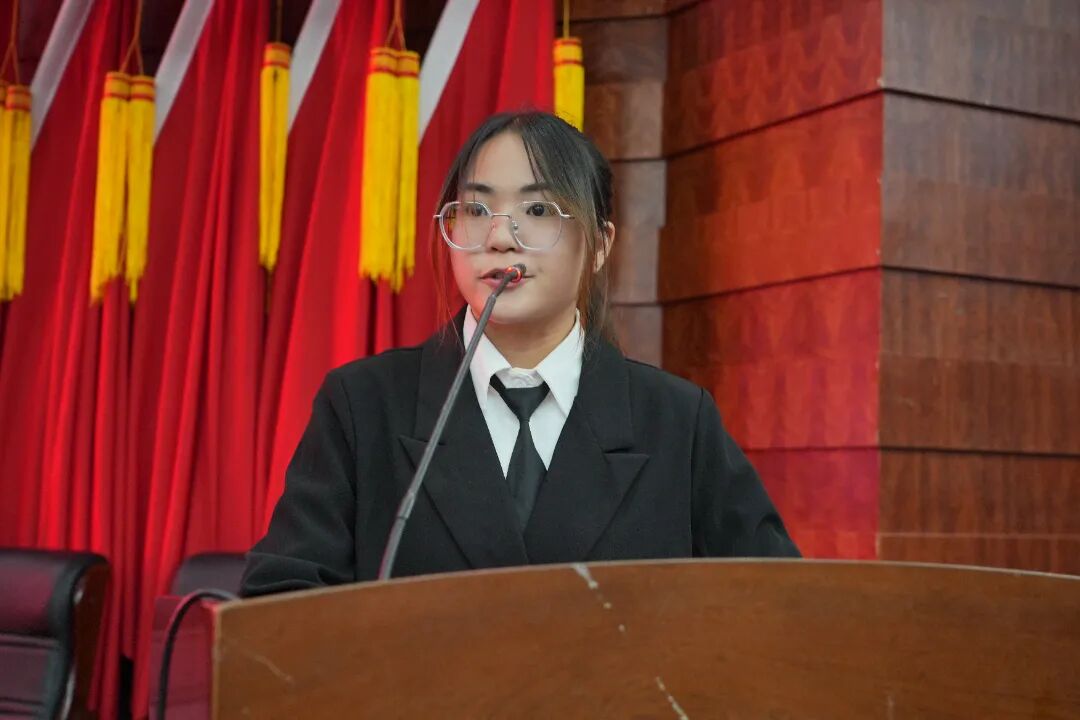 第十二期学员代表傅博阳同学发言表示,将倍加珍惜 “青马工程” 搭建的锤炼政治品格、提升综合素养的宝贵平台,以第十一期优秀学员为榜样,坚定马克思主义信仰、强化实践担当意识,努力在理论学习中筑牢思想根基,在实践锻炼中增长过硬本领,以高度的责任感与使命感严格要求自己,全力朝着 “政治坚定、能力突出、作风过硬” 的目标奋进,努力成长为一名能担时代重任的坚定青年马克思主义者,不辜负学校的培养与期望。