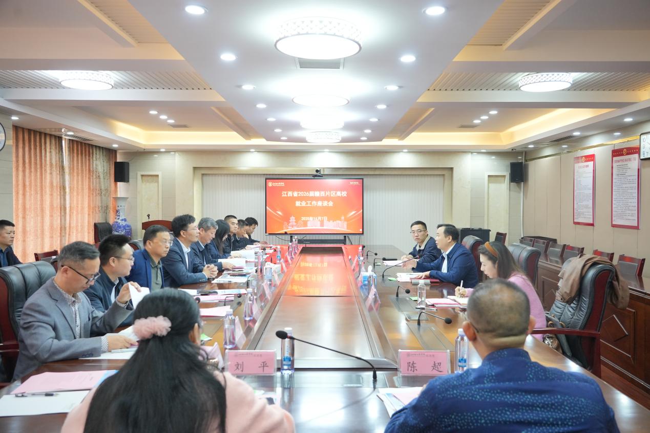 11月7日,江西省2026届赣西片区高校就业工作座谈会在江西工程学院天工校区行政楼七楼会议室召开。江西省教育评估监测研究院高校就业指导监测中心主任鄢彬华,江西省教育厅就业专班干部罗菁、赖涛,以及赣西片区内12所高校的就业工作负责人齐聚一堂,围绕2026届毕业生就业形势、面临挑战及推进举措等内容展开深入交流。江西工程学院党委副书记、副校长冯赟出席会议。会议由鄢彬华主持。