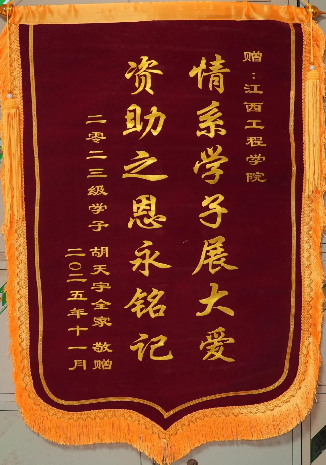 近日,江西工程学院人工智能与数据科学学院2023级计算机应用技术专科1班学生胡天宇,在父亲的陪伴下,将一面承载着满满感激之情的锦旗送到学校,向在他患病期间给予关心与帮助的学校领导、老师、师生、教官及校友表达最诚挚的谢意。这温暖的一幕,不仅彰显了胡天宇同学面对困境时的坚韧与感恩之心,更生动诠释了江西工程学院“江工播大爱、教师有归属,学生争自强”的育人理念与大爱情怀。