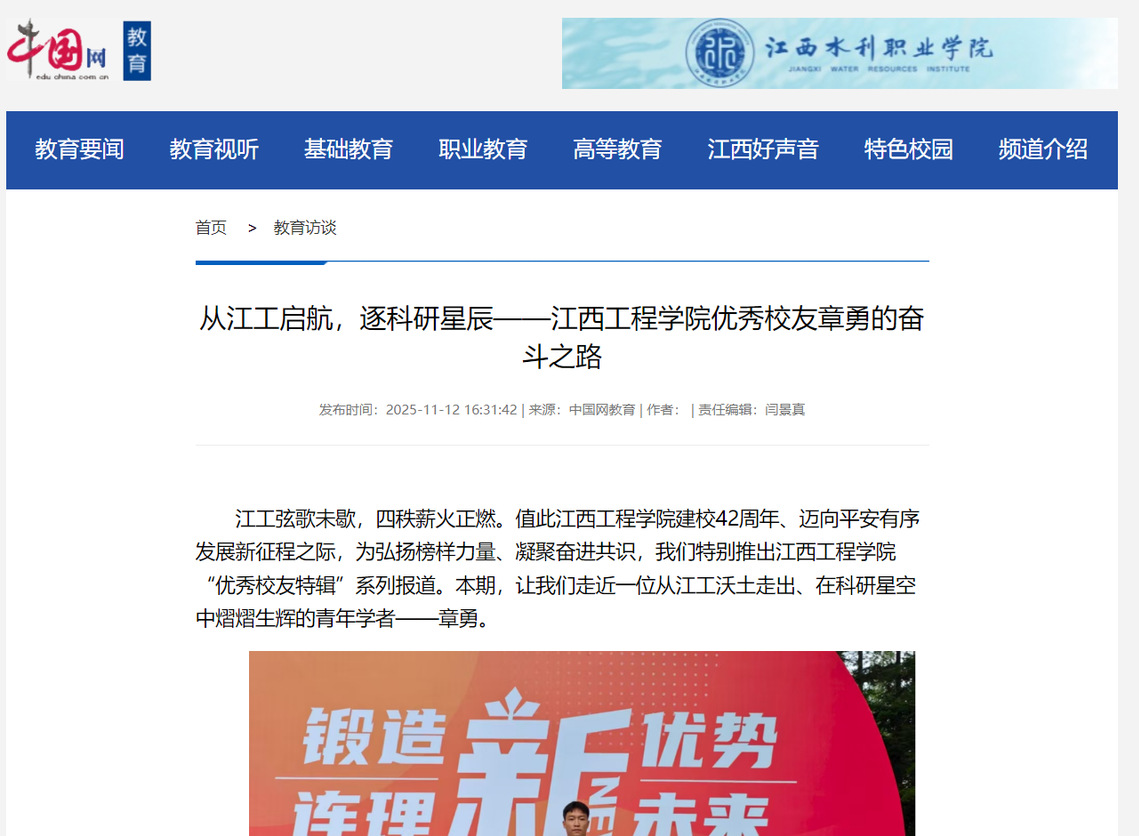 章勇的奋斗历程,是一部从应用型本科走向顶尖科研殿堂的励志传奇。他的每一步跨越,都印证着江西工程学院“勤朴敏信”校训的精神力量,彰显了学校“以生为本、因材施教、产教融合”的育人成效。